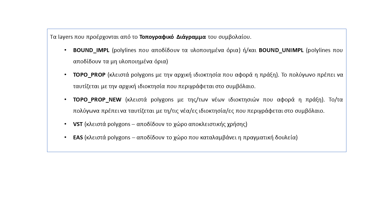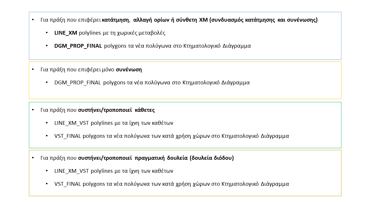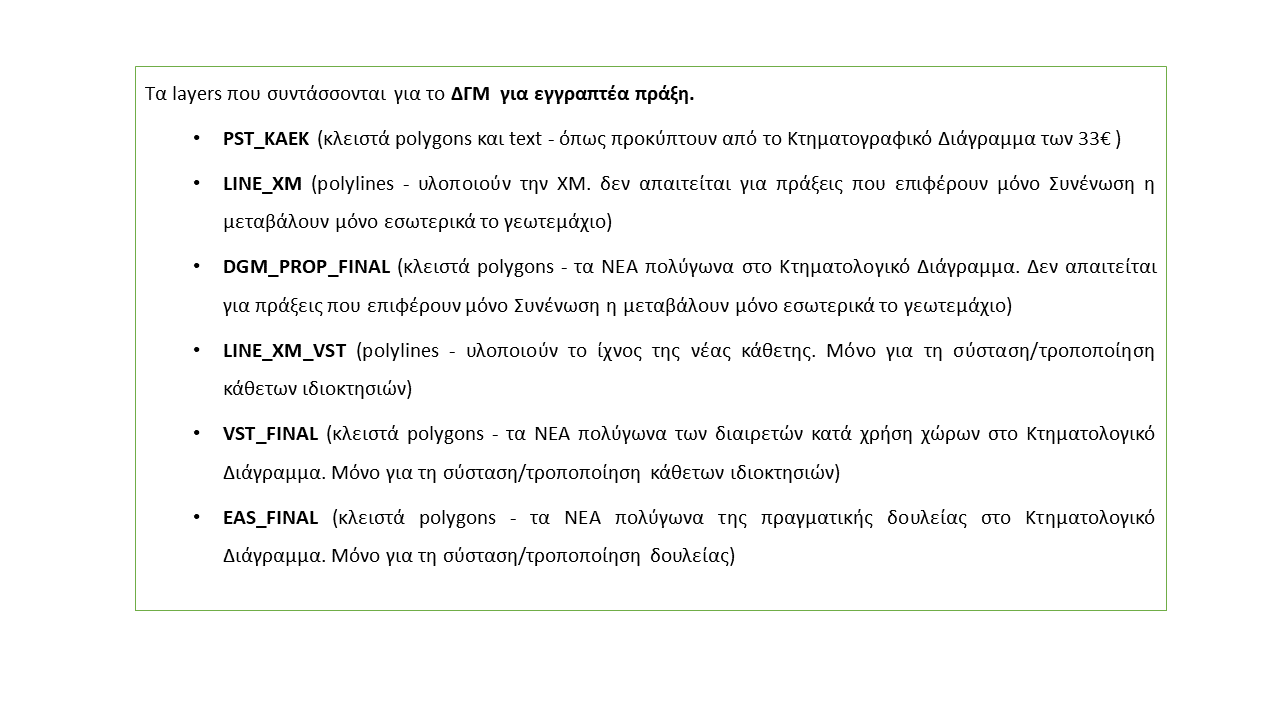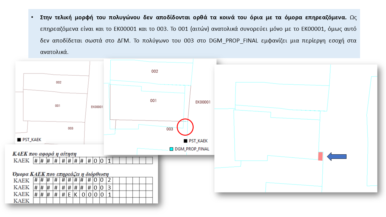 Η επιτυχής ηλεκτρονική υποβολή ενός διαγράμματος γεωμετρικών μεταβολών, δεν διασφαλίζει ότι το δγμ μπορεί να εφαρμοστεί. Παρατηρούνται λάθη που οφείλονται στη συσχέτιση του είδους της αίτησης με το δγμ ή και στη δομή των επιπέδων του ίδιου του δγμ. Η κατάληξη αυτών των αστοχίων είναι η ενημέρωση του μηχανικού από το Κτηματολογικό Γραφείο μέσω μιας Τεχνικής Εισήγησης στην οποία επισημαίνονται οι αστοχίες ως τυπική έλλειψη και η ανάγκη για επαναυποβολή του δγμ με νέο ΚΗΔ.
