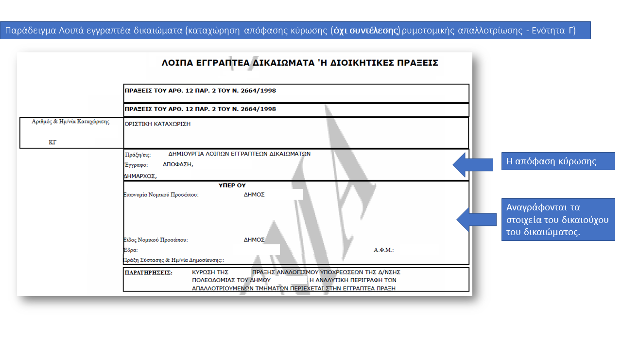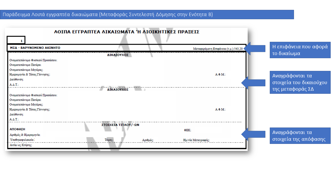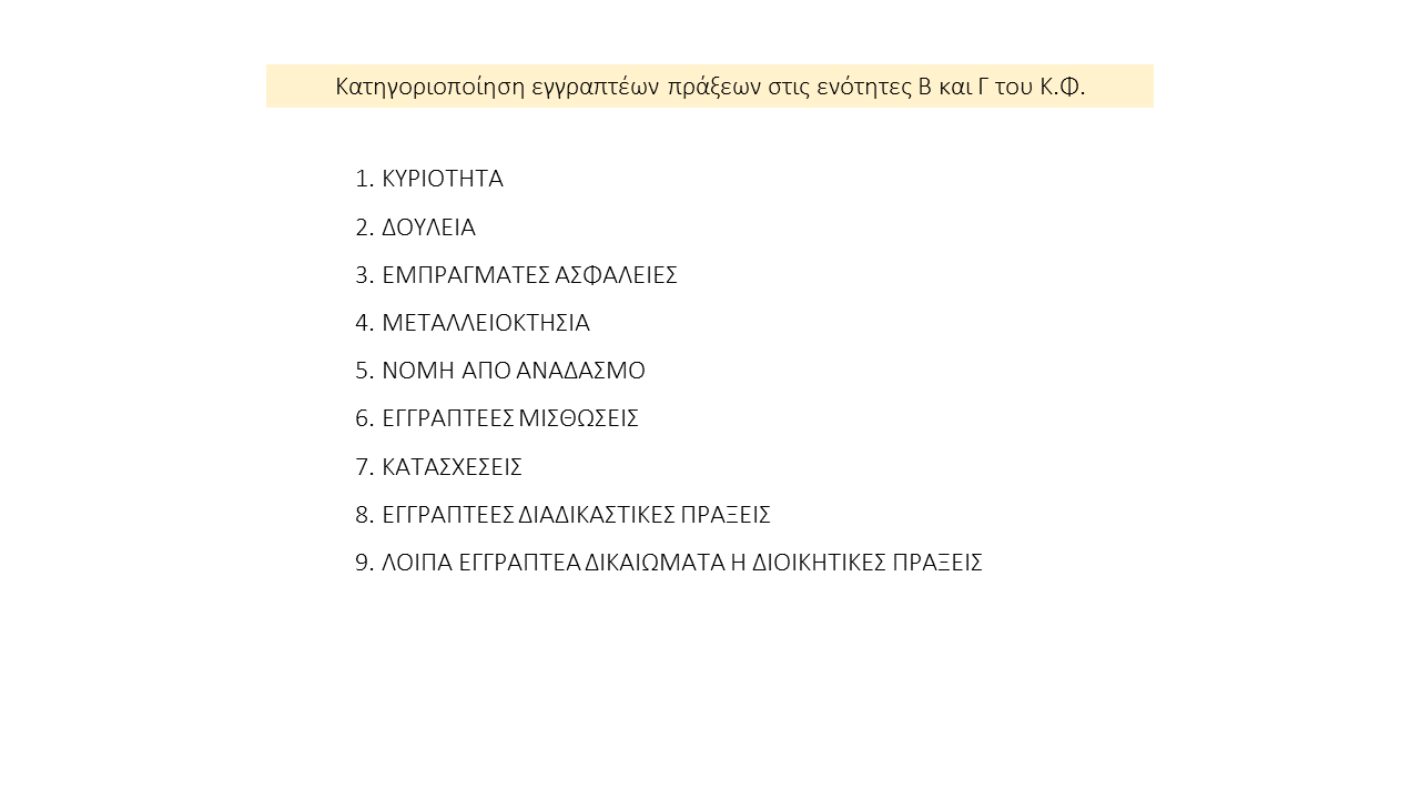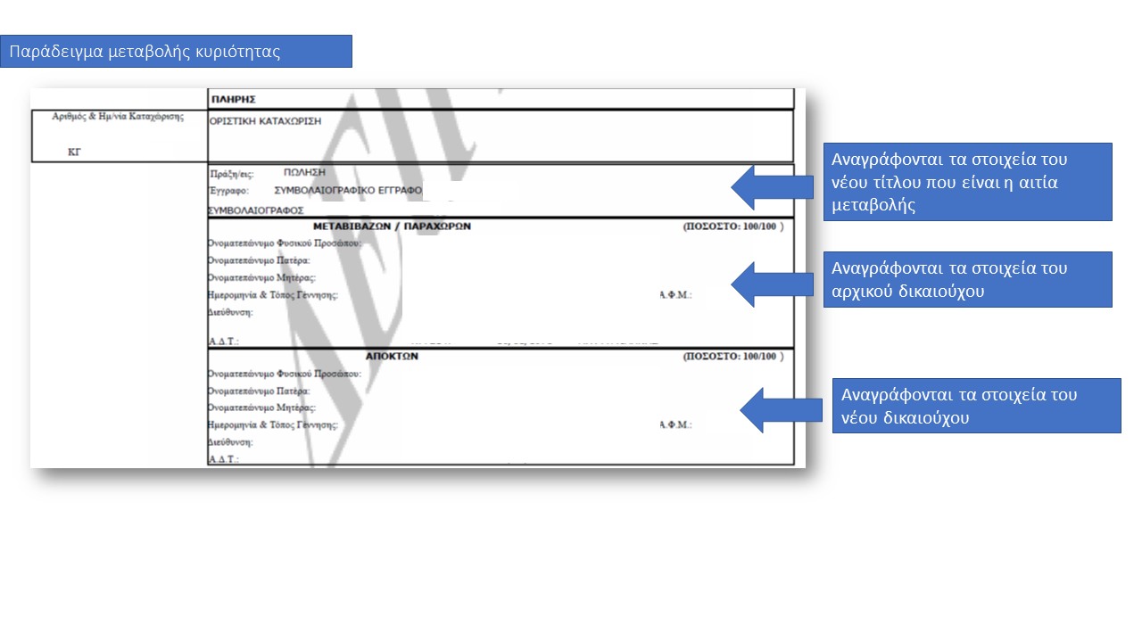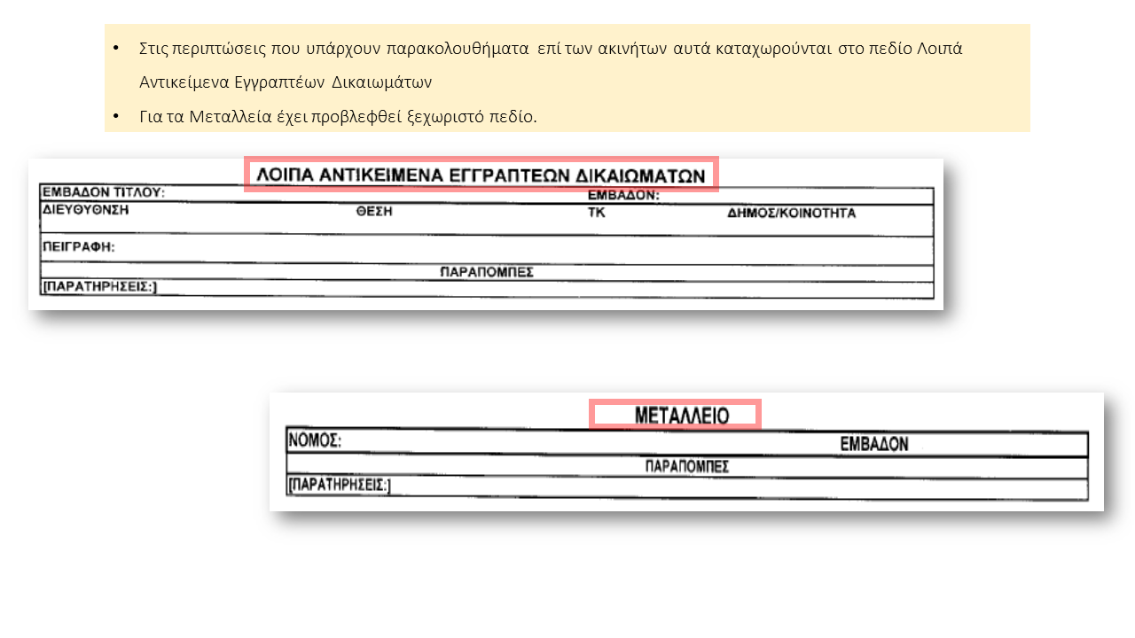 Στο Κ.Φ. εμπεριέχεται όλη η νομική πληροφορία για την κατάσταση του ακινήτου καθώς και στοιχεία από την ταυτότητα του. Κάθε Κ.Φ. διαρθρώνεται σε πέντε ενότητες (Α, Β, Γ, Δ και Ε):